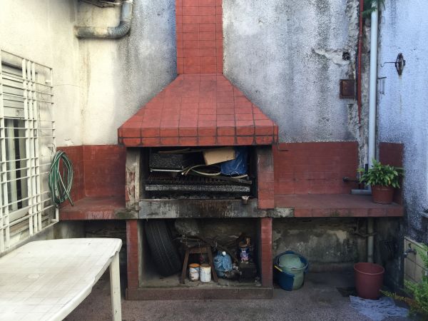 En el fondo se construyo una propiedad de tres ambientes, con cocina living y baño en planta baja, encontrando en el primer piso dos dormitorios mas un segundo baño. Entre las propiedades hay un pequeño patio del ancho del lote por 3 metros de largo donde se ubica una parrilla. Al terminar la segunda propiedad queda un metro hasta la pared del fondo.