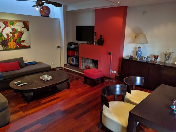 Ingreso al Living comedor en desnivel distriubuido en comedor y sector de sillones de 7 x 4 mts.