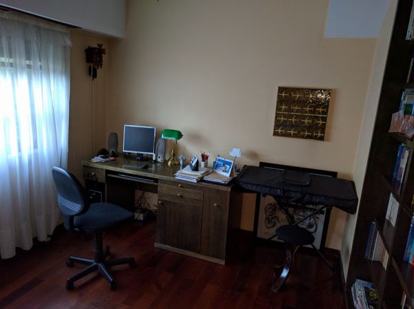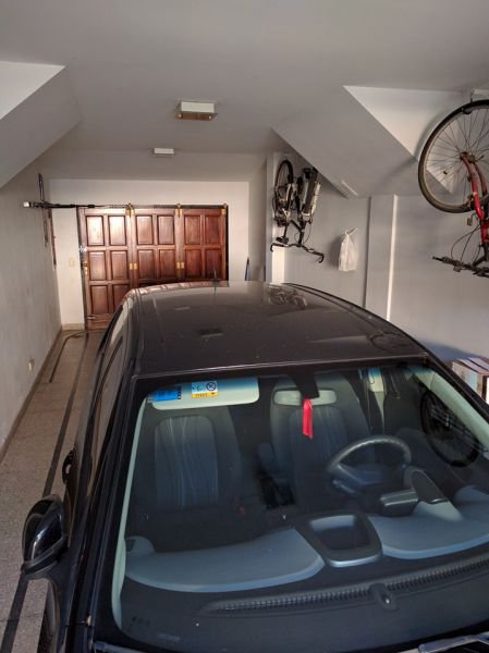 Garage para dos vehiculos cubiertos de 9 x 3.2 aprox. con posibilidad de un vehiculo mas al descubierto. Portón corredizo manual.
