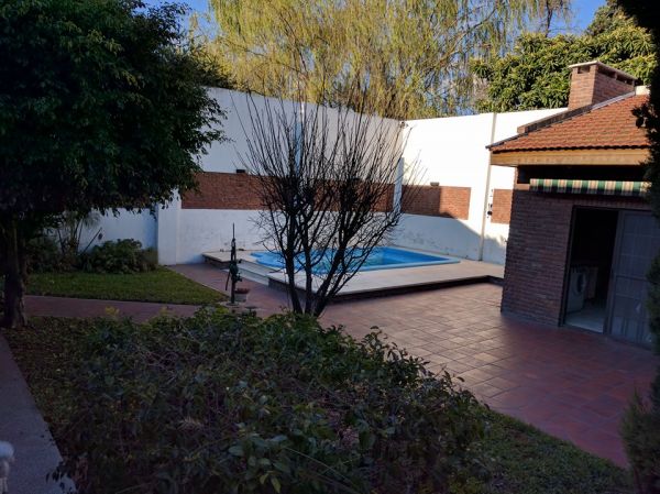 Fondo irregular con pileta y quincho. Patio libre 13 x 5. Quincho con parrilla y baño de 6 x 4.