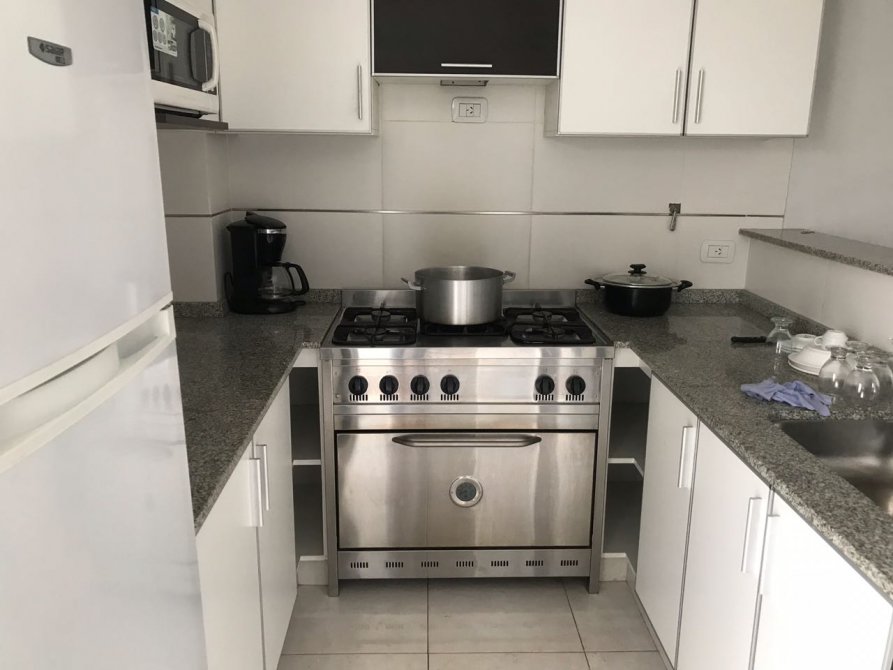 Cocina de 1,55 x 1,80 m; con muebles bajo mesada y alacena. Horno y anafe eléctricos.