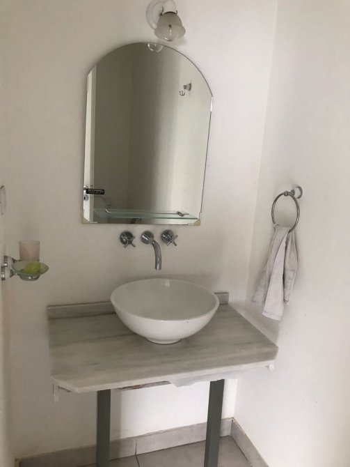 Balcón: 4 x 1,70 m. con parrilla y mesada con bacha y conexión para el lavarropas.