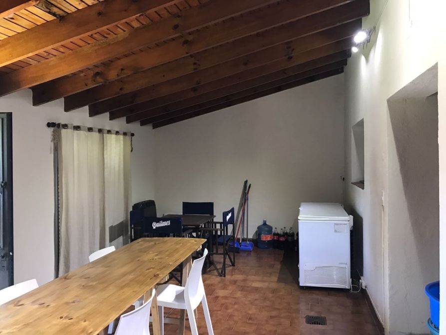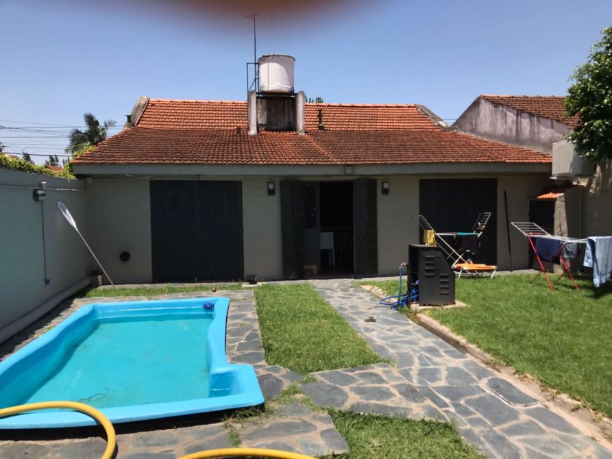 Jardín con pileta de fibra de vidrio. Caminos de lajas irregulares. Toilette. Parrilla a reciclar.