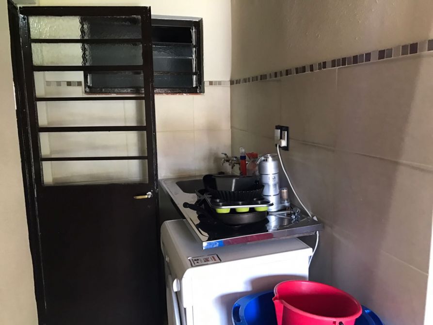 Ingreso por Estar comedor con cocina integrada: 3,50 x 7,50 Mts. Ventanas tipo barrio al frente. Piso mosaico granítico en todo el ambiente. Cocina hecha a nueva, muebles bajo mesada en melamina con terminaciones y manijas en aluminio. Revestimiento cerámico con guarda de venecitas a tono.