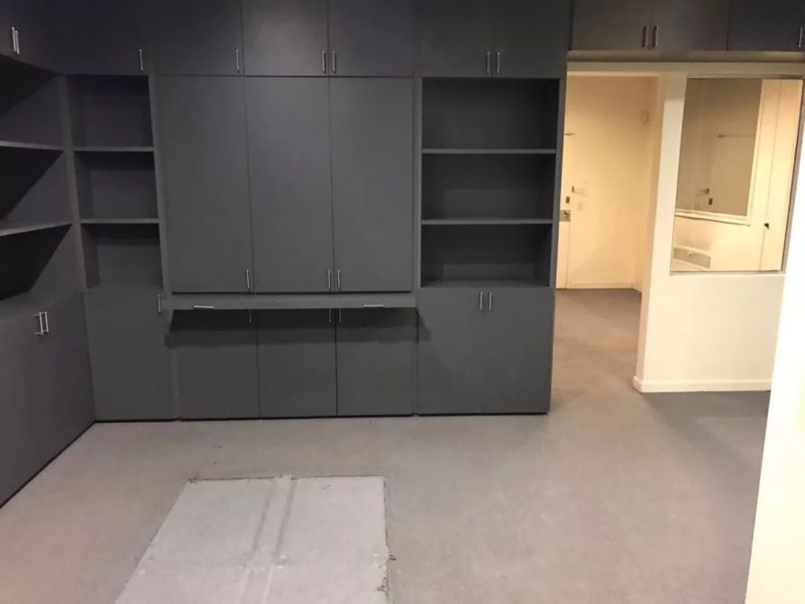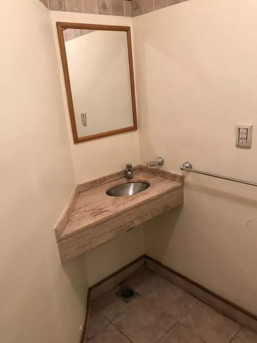 Ingreso por entrada en común con otras 2 oficinas. Piso alfombrado en su totalidad, 2 despachos hechos en placas de yeso, con vidrios. Toilette con piso cerámico, mesada de mármol, bacha simple, canilla monocomando, espejo y accesorios completos. Calefacción central y aires acondicionados funcionando correctamente. Equipado con muebles en melamina color grafito, con puertas y estantes, que proporcionan a la unidad mayor espacio de guardado y almacenamiento.