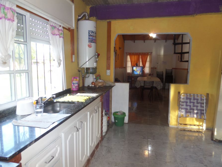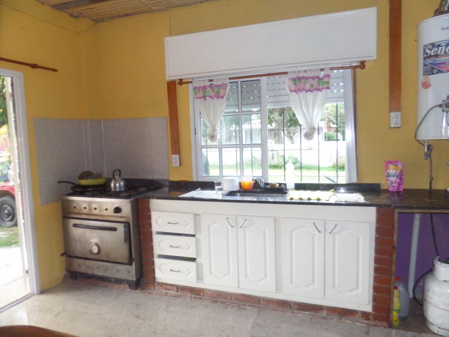Cocina semi integrada al estar comedor. 4 x 3,50 Mts. Piso cerámico. Muebles bajo mesada, bacha simple con canilla monosomando. Mesada de granito. Ventana con vista al jardín. Salida al quincho.