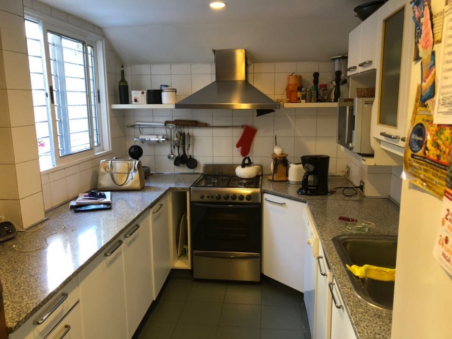 Cocina / Comedor diario: 6 x 2,30 Mts. Mesada de granito, muebles de alacena y bajo mesada completos. Bacha doble, de acero.