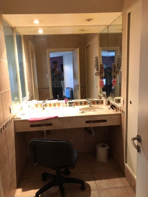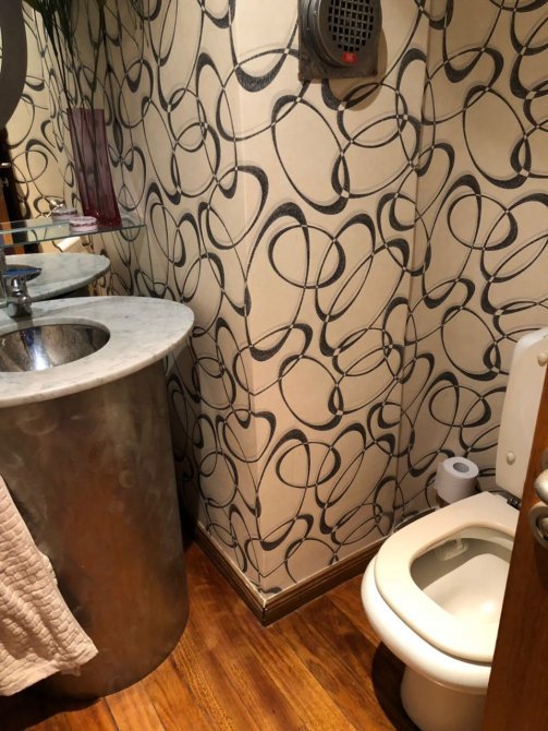 Toilette: 1,70 x 1,55 Mts. Paredes empapeladas, en perfecto estado. Vanitoy de diseño exclusivo.
