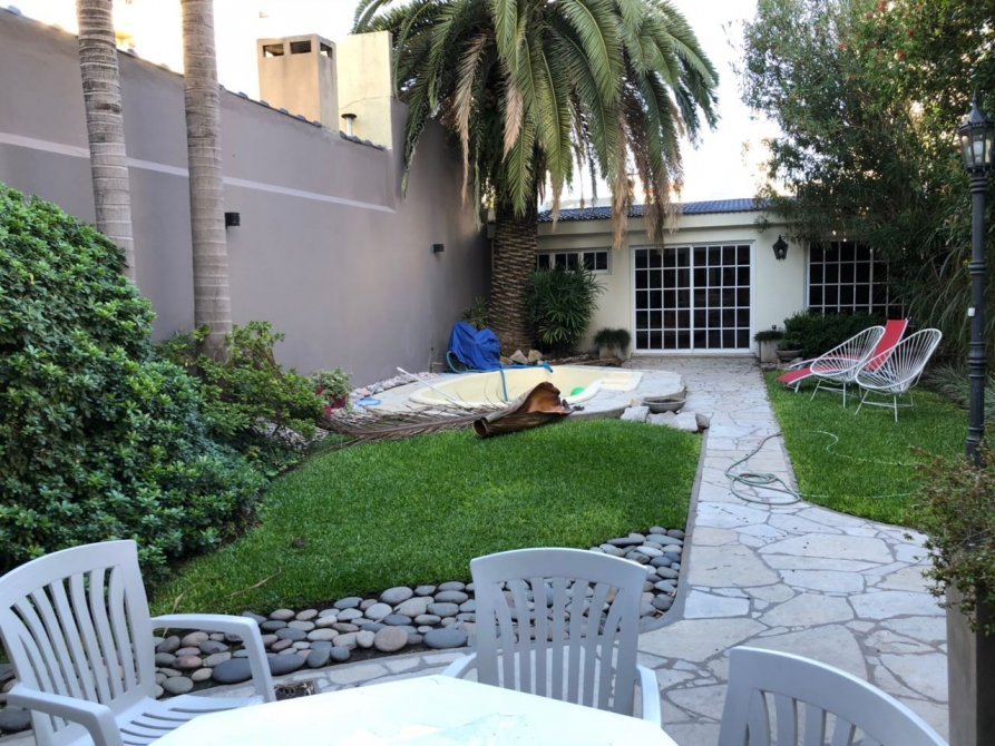 Fondo parquizado, de 17 x 8,70 Mts. Pileta mediana en excelente estado. Toilette 2,70 x 1,50 Mts., con revestimiento cerámico completo y placard.