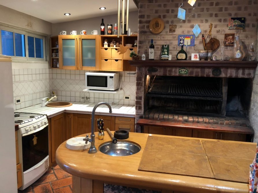 Quincho: 8,70 x 3,40 Mts. Con cocina a gas, muebles de alacena y bajo mesada completos. Parrilla. Tiro balanceado. Ventanales con vista al jardín.