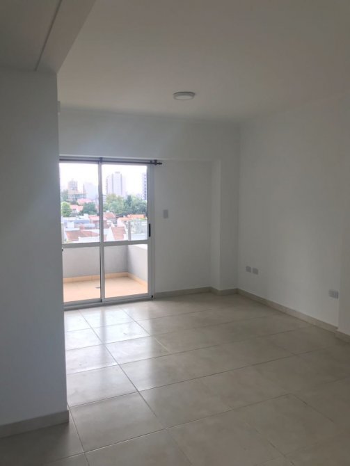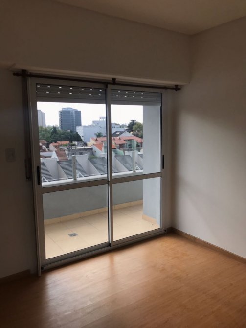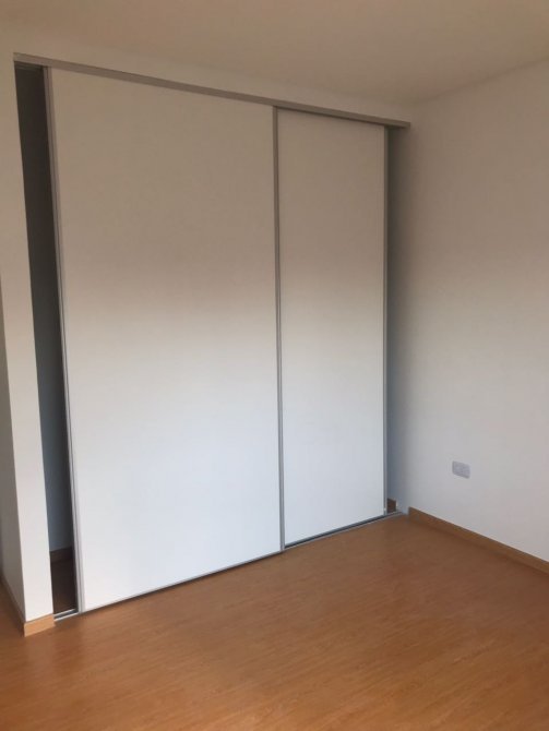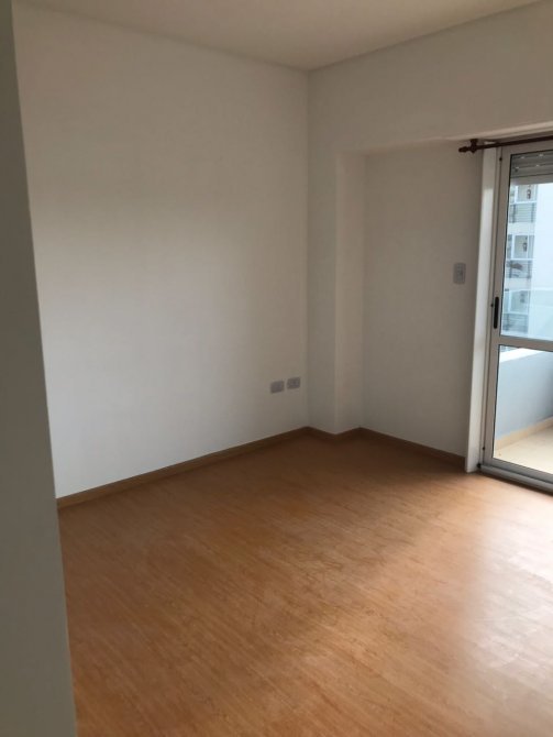 Dormitorio de 3,15 x 3,10 mts, con piso flotante y espacio de placard empotrado. Ventanal con salida al balcón.
