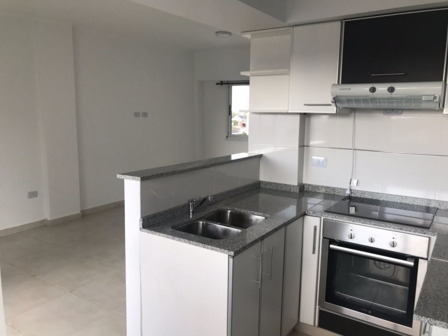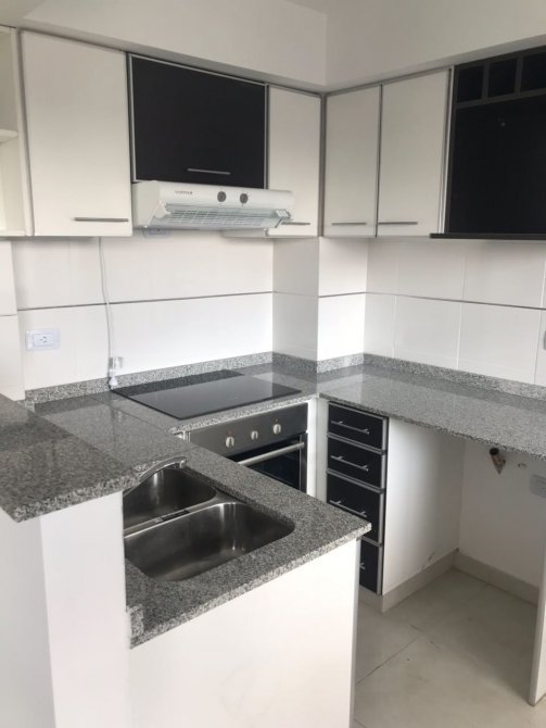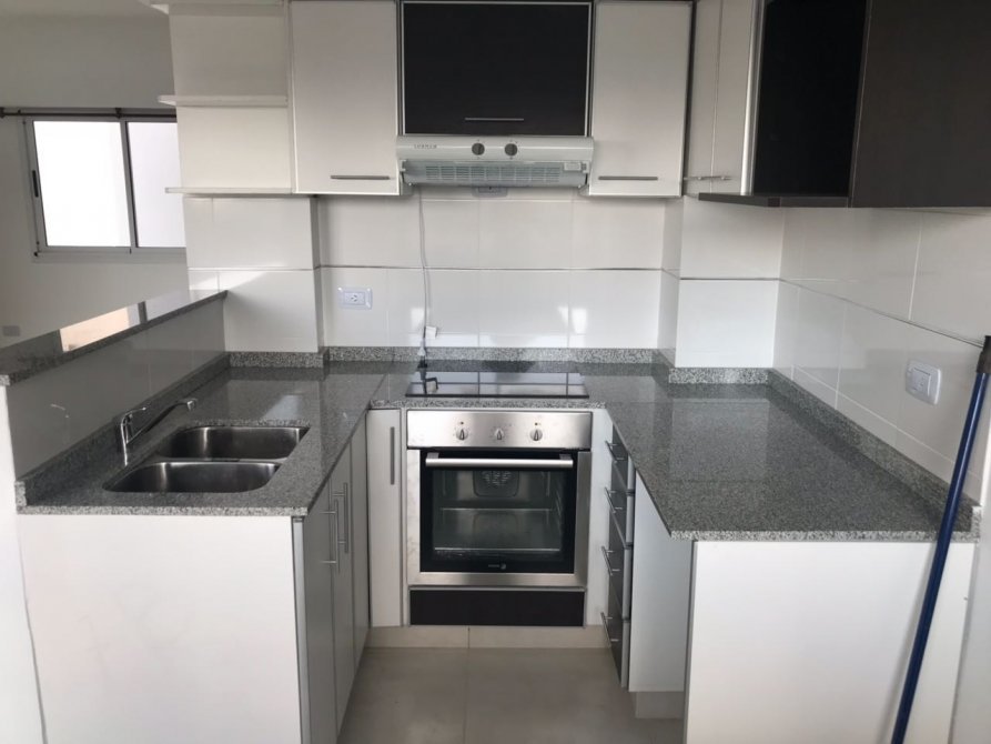 Cocina semi integrada, con espacio para comedor diario de 2 x 3,45 mts. Espacio de lavarropas bajo mesada. Se entrega con todos los muebles completos (alacena y bajo mesada).