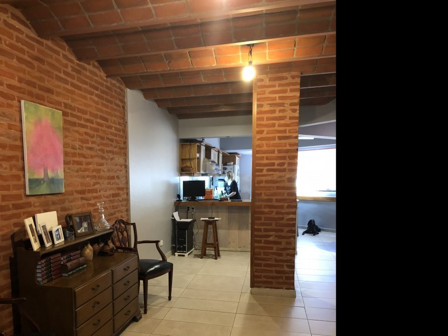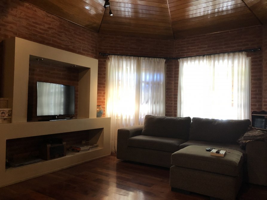 Living: 4,50 x 4,40 Mts. Piso tarugado en excelente estado. Ventanales al frente. Paredes rústicas, con ladrillos tipo vista.