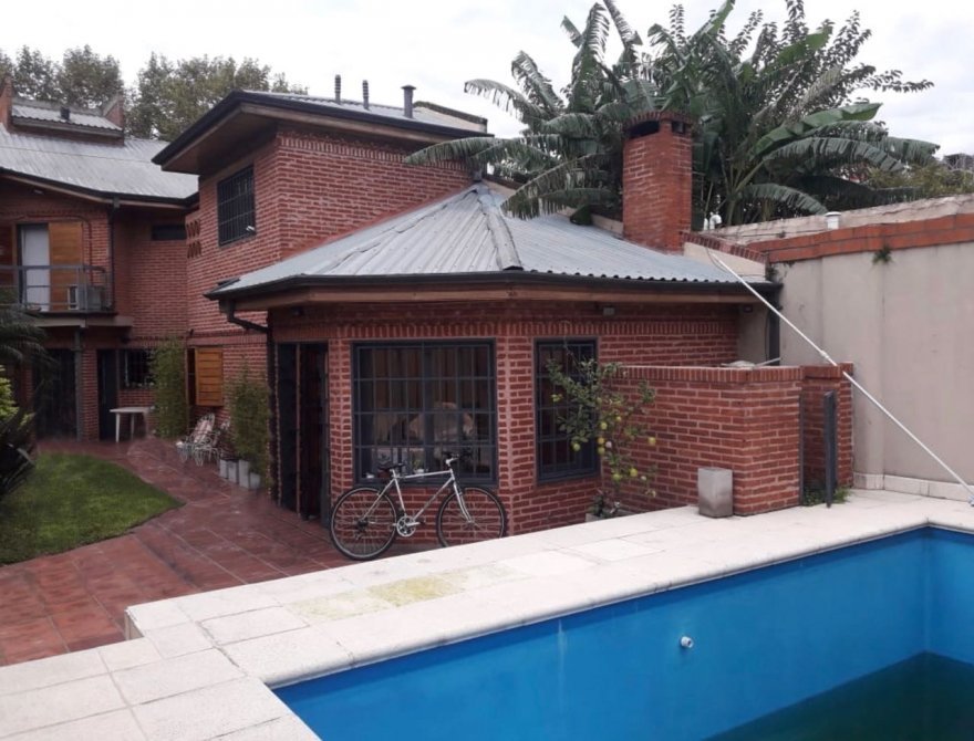 Quincho: 5 x 4,30 Mts. Piso laja roja, parrilla, muebles de alacena y bajo mesada completos, cocina gastronómica.