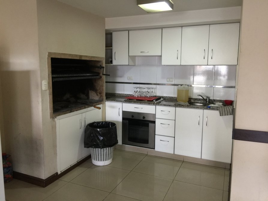 Cocina: 2,75 x 1,35 Mts. Piso de porcelanato pulido. Muebles de alacena y bajo mesada en melamina. Horno y anafe eléctrico.