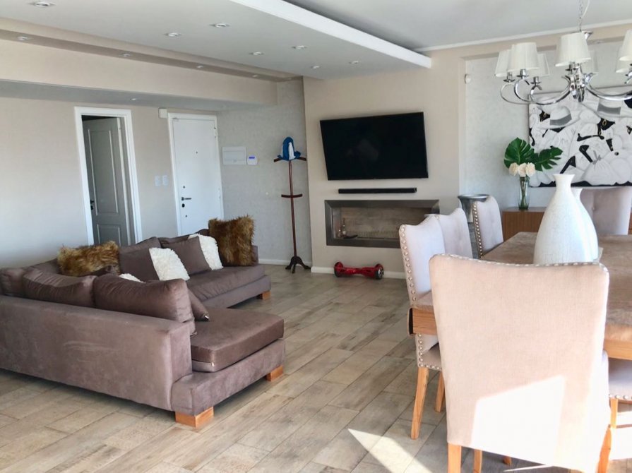 Acceso por amplio living comedor de 5,90 x 6,30 Mts. Chimenea con quemador de bioetanol. Ventanales con salida al balcón.