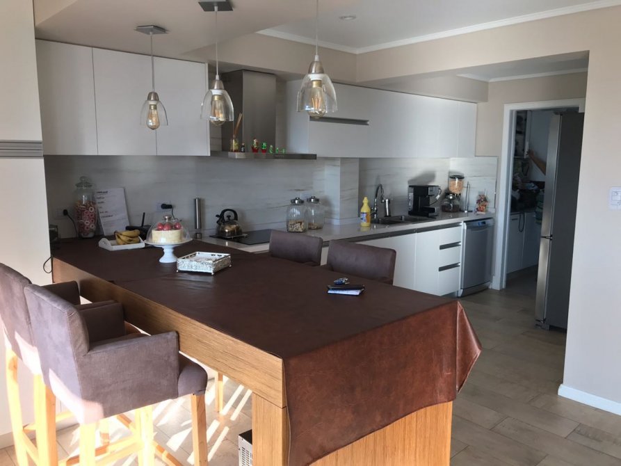 Cocina con comedor diario: 3,15 x 5,60 Mts. Anafe vitrocerámico. Horno eléctrico Longvie. Instalación para lavavajillas. Mesada de mármol.