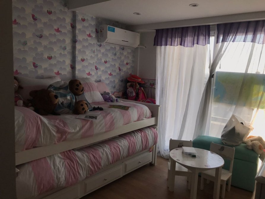 Dormitorio secundario: 3 x 3,50 Mts. Piso flotante. Ventanal con salida al balcón. Aire acondicionado frío / calor.