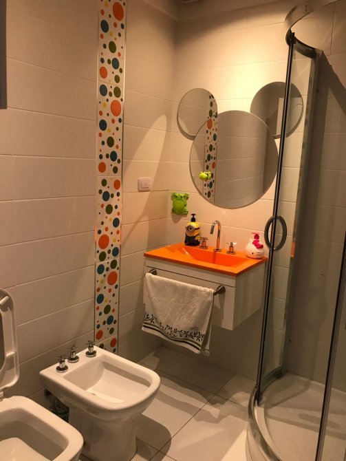 Baño en suite: 2 x 1,70 Mts. Vanitory flotante. Box de ducha con columna escocesa.