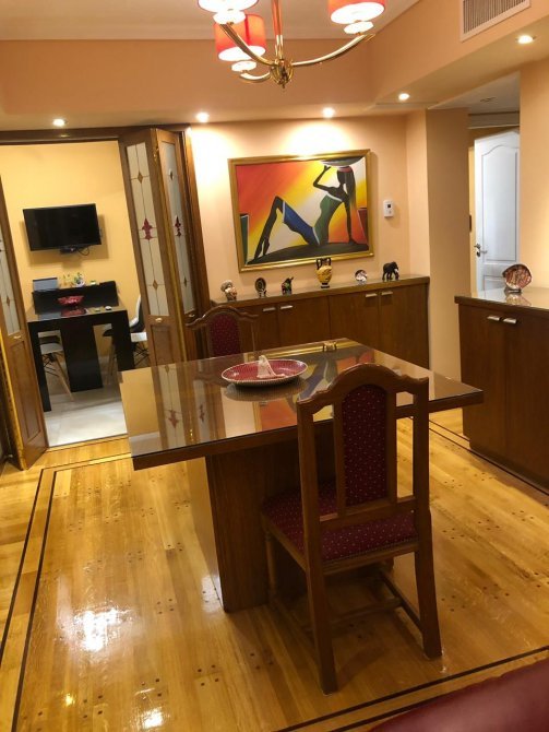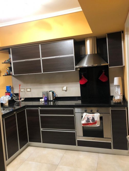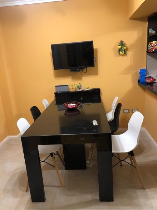 Cocina: 2,80 x 2,55 Mts. Mesada de granito negro absoluto, horno y anafe eléctricos de primera calidad. Muebles de alacena y bajo mesada. Comedor diario integrado de 2,80 x 2,60 Mts con pisos de porcelanato. Ventanal y puerta con salida al balcón.