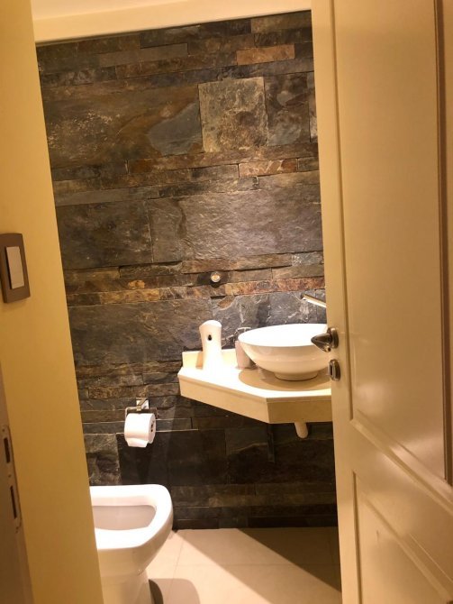 Pasillo distribuidor. Toilette de cortesía: 1,35 x 1,35 Mts. Bacha de apoyo, canilla monocomando.