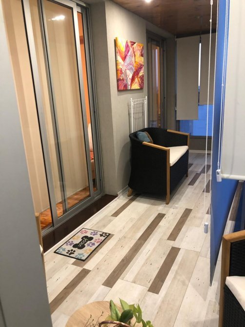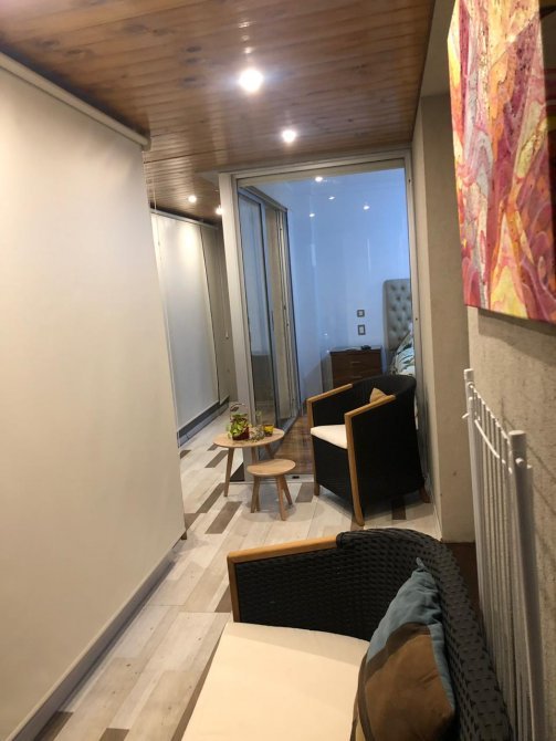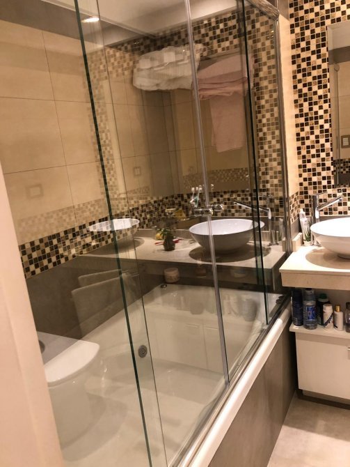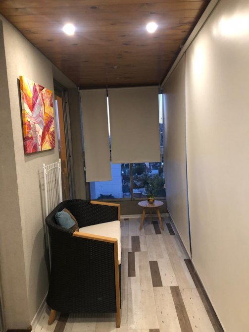 Balcón: medidas similares al del frente. Cerramiento de vidrio templado. Piso de porcelanatto simil madera.