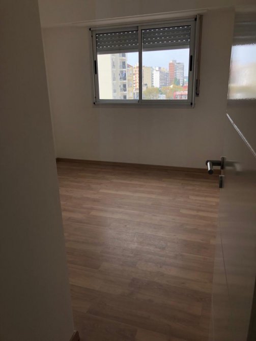 Dormitorio secundario: 3 x 2,60. Placard con frentes en melamina (2 hojas corredizas). Interiores completos. Piso flotante. Vista al pulmón del edificio.