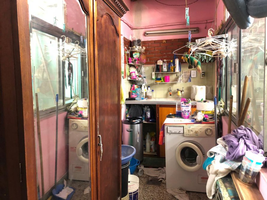 Lavadero cubierto de 6,30 x 1,50 m. Con instalación para lavarropas y mesada con pileta para lavado a mano.