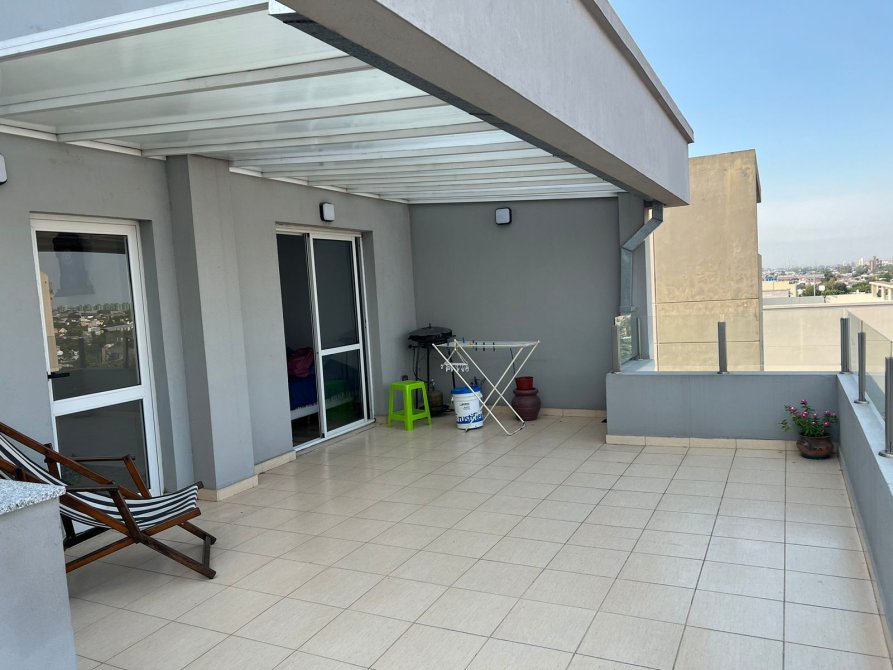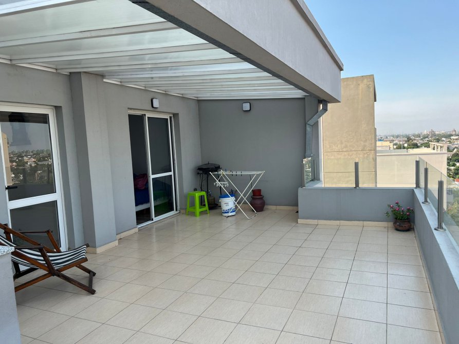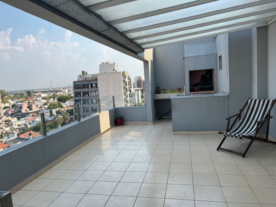 Terraza propia: 4 x 8,35 Mts. Con parrilla, isla, bacha e instalación para lavarropas. Techo de aluminio con placas de policarbonato. Excelente vista!