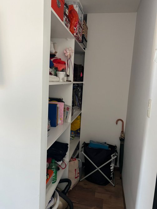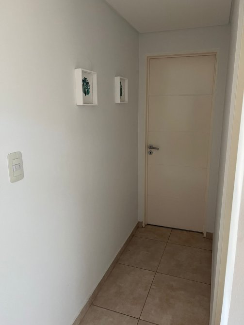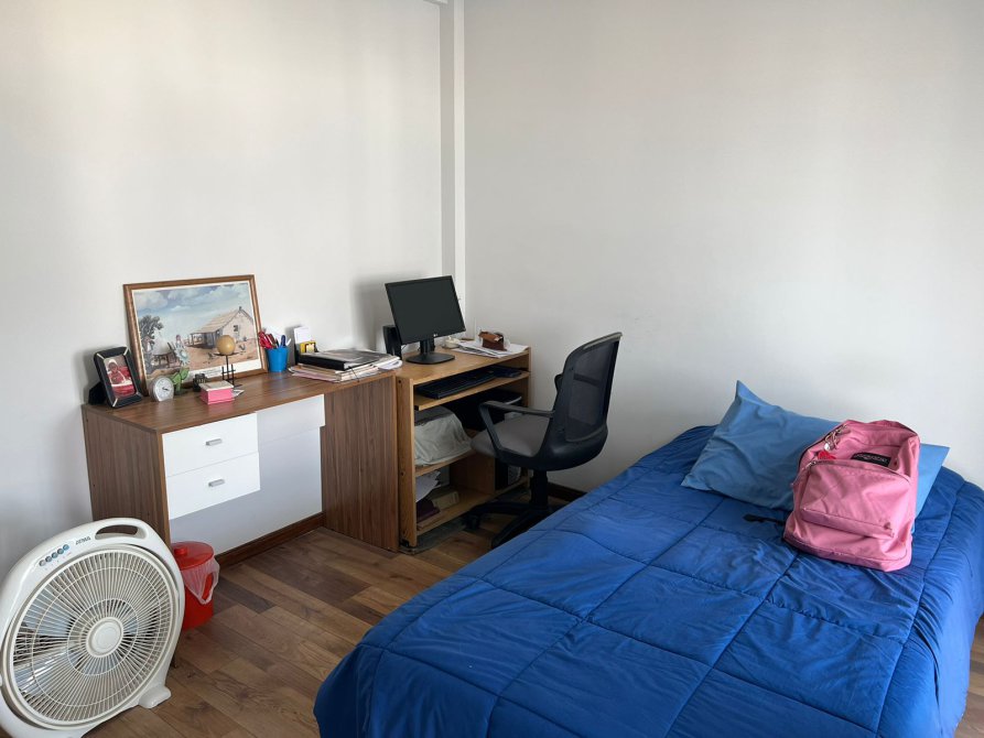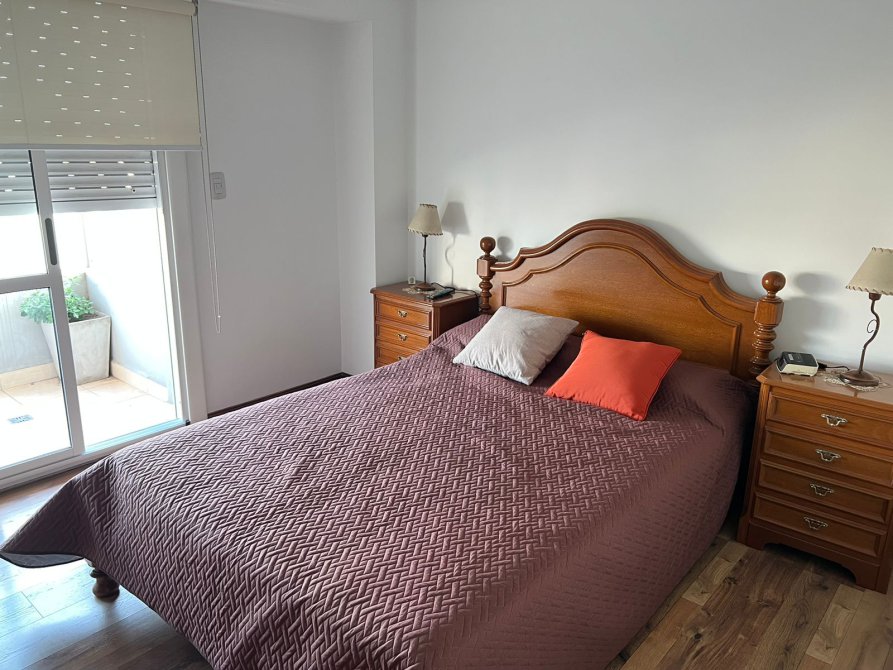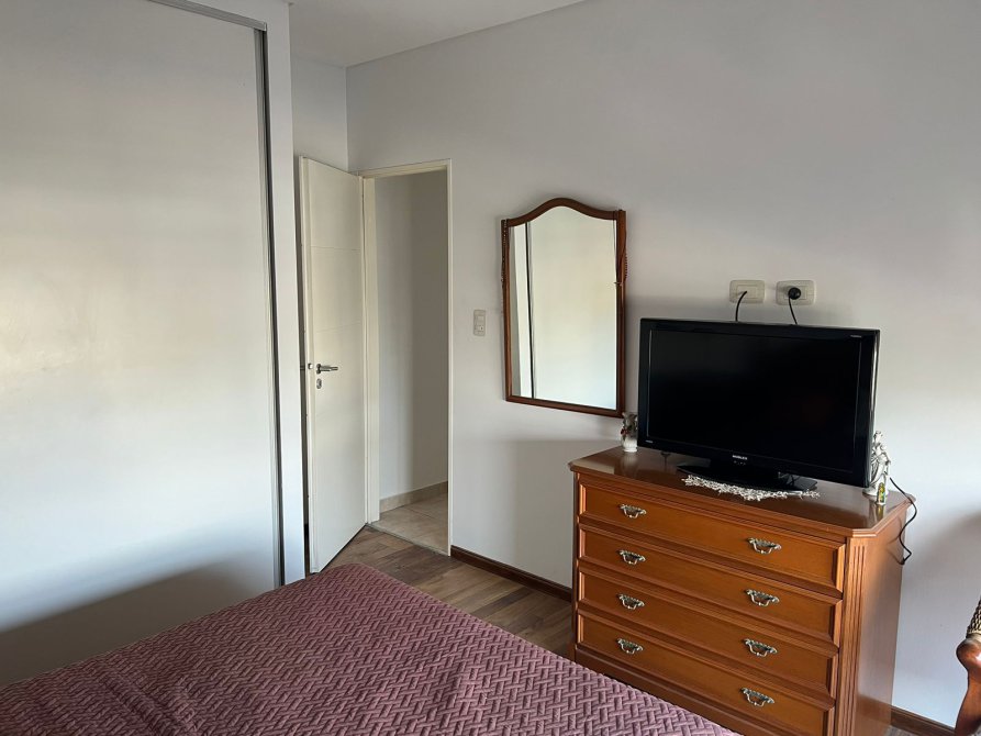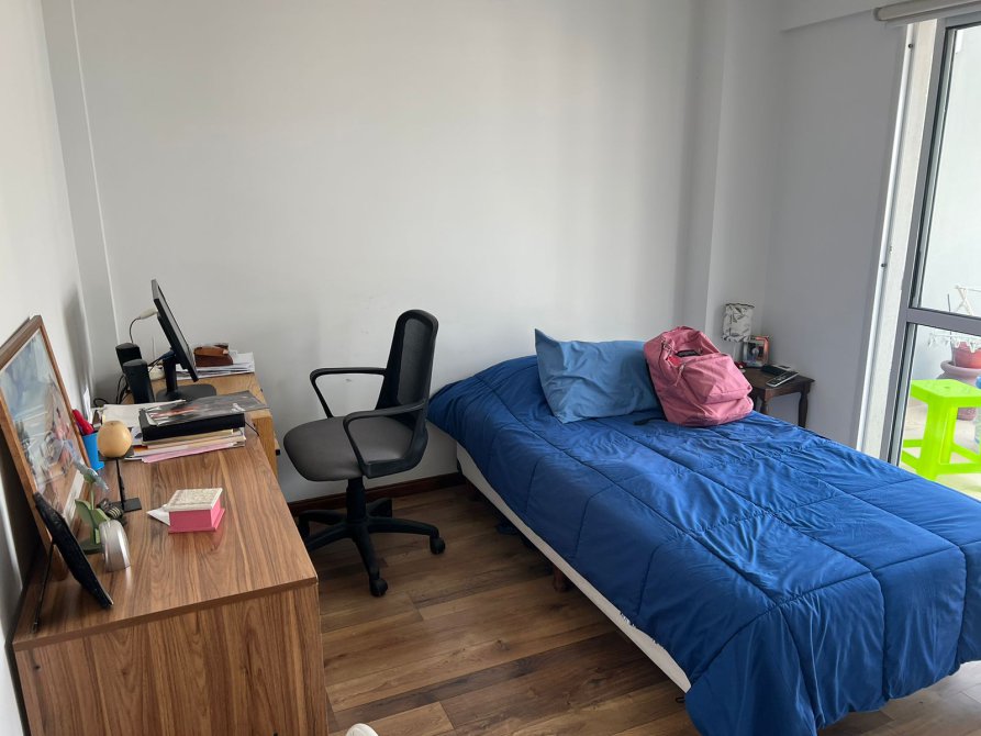 Dormitorio: 3,10 x 3,18 con placard de puertas corredizas e interiores completos. Piso flotante. Ventanal con salida al balcón. Aire acondicionado split frío / calor.