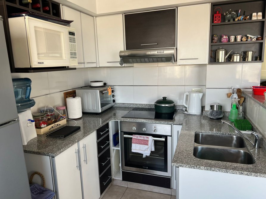 Cocina: 2 x 3,40 Mts. Muebles completos en alacena y bajomesada. Horno y anafe vitrocerámico de 4 hornallas, eléctricos. Extractor / purificador. Bacha doble, con canilla monocomando.