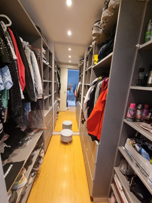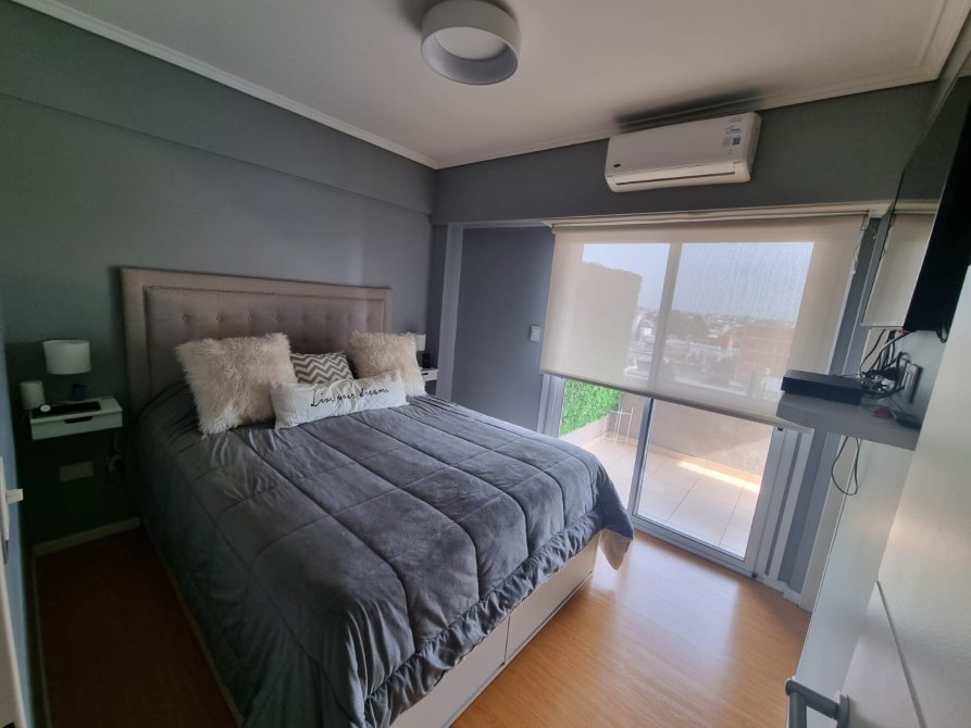 Dormitorio principal con piso flotante, aire acondicionado. Vestidor con interiores completos. Ventanal con salida a balcón.