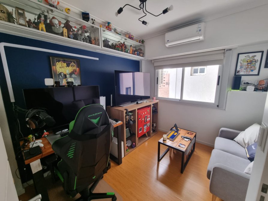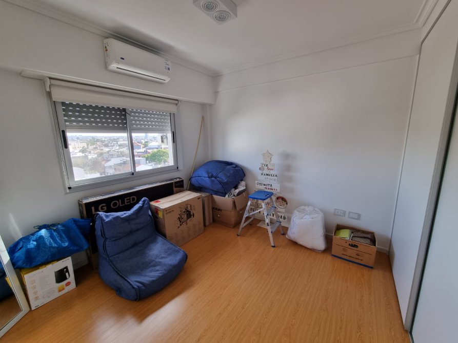 Dormitorio secundario con piso flotante, placard, aire acondicionado. Ventana al contrafrente.