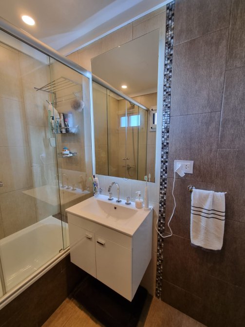 2do Baño con revestimiento cerámico en su totalidad. Bañera con mampara de vidrio. Vanitory y sanitarios completos.