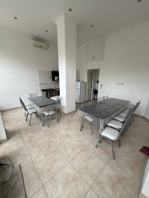 Salón de Usos Múltiples con entrada indepediente totalmente equipado con muebles, vajilla, electrodomésticos, parrila y toilette. Capacidad + de 20 personas.