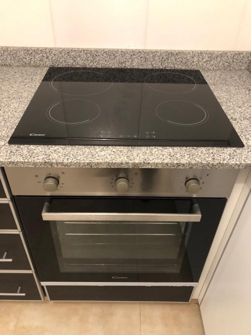 Cocina: 2,40 x 1,50 m. Muebles de alacena y bajomesada completos. Mesada de granito gris. Horno y anafe eléctrico.