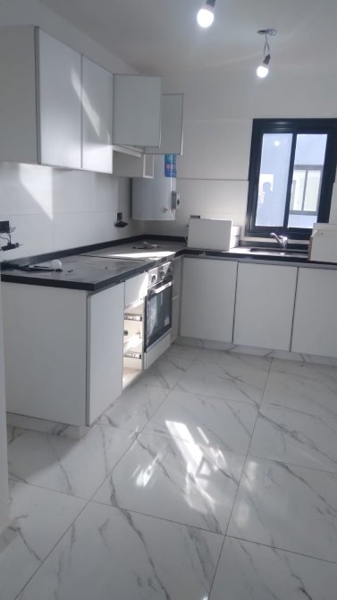 Cocina 3.1x1.99 metros con ventana de alumino color negro linea Modena. Muebles bajomesada y alacena en melamina completos. Mesada de granito. Doble bacha de acero inoxidable con canilla monocomando. Horno y anafe eléctricos.
