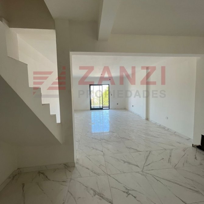 Ingreso a amplio living/estar de 5.74x4.15 metros. Pisos de porcelanato.Aberturas de alumino color negro linea Modena con salida a balcón aterrazado. Balcón con pisos cerámicos y conexión para lavarropas.