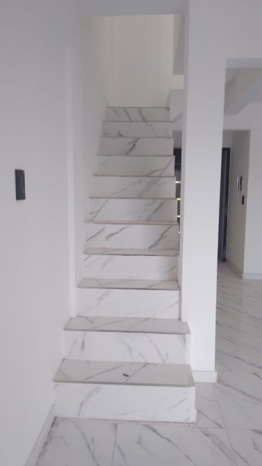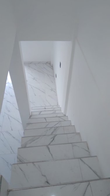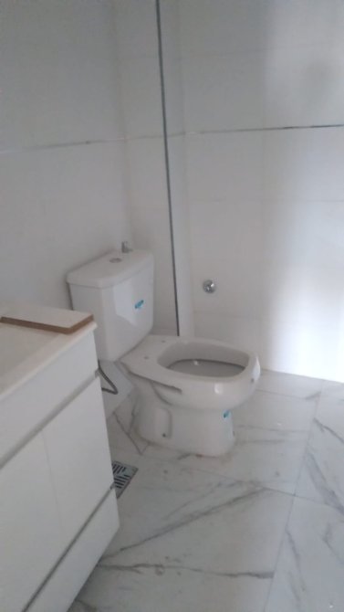 Baño 2.55x1.5 metros con revestimiento cerámico completo. Ventana con marco de aluminio color negro linea modena. Sanitarios completos.