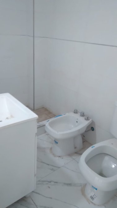 Toilette 2x1.28 metros con revestimiento cerámico y sanitarios completos.